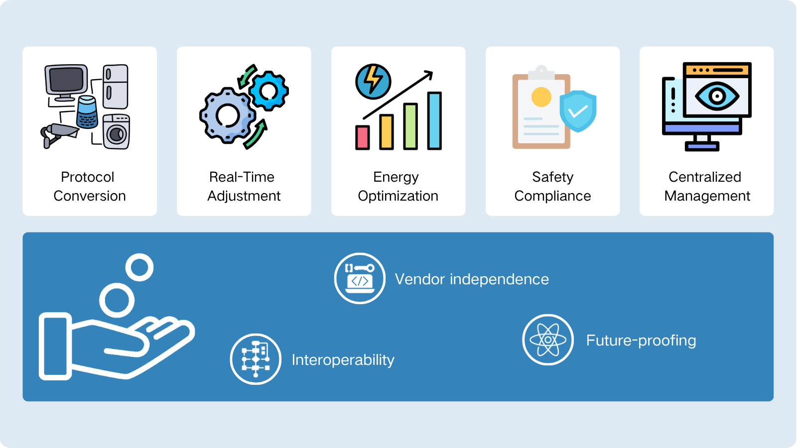 3. Interoperability: Your HVAC system can talk to your lighting, security, and energy metering without custom integration
