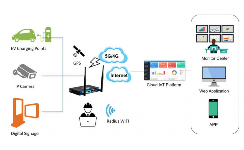 The TG452 LoRa Gateway, leveraging 4G LTE/LoRa wireless protocols. Consequently, it can connect ultrasonic parking space sensors and RFID-enabled EV chargers, providing granular data on parking space occupancy (accuracy >99%), charging status (power levels, session duration), and user behavior (peak usage times). This enables real-time parking guidance and dynamic charger allocation.