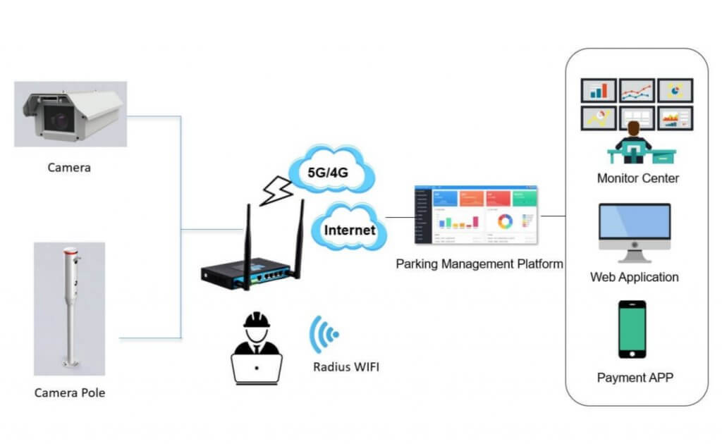 Technologies like NB-IoT/LoRa/LTE-M enable long-range (5km+), low-power connectivity for scattered sensors in large parking lots or remote areas.