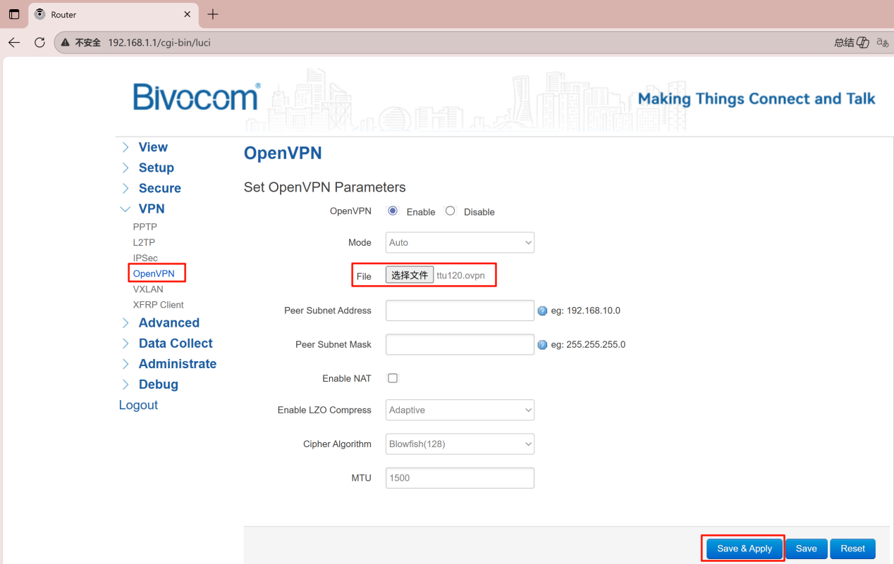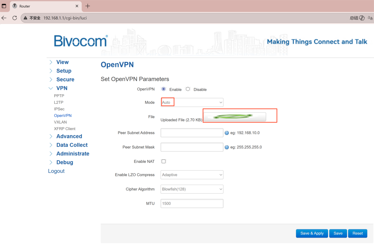 At Bivocom, we offer several resources to help you secure IoT connectivity. Our industrial products support OpenVPN in both client and server modes, and the latest firmware includes an Auto‑mode that accepts complete .ovpn configuration files—no manual certificate, key, or cipher setup required. For protocol selection, read VPN IoT Security: OpenVPN vs IPsec; for full server‑client deployment, see How to Setup OpenVPN on Bivocom IoT Router & Gateway. This guide covers our simplest, fastest client‑side method: connecting through an .ovpn file for hassle‑free, stable VPN links.