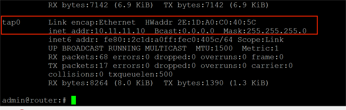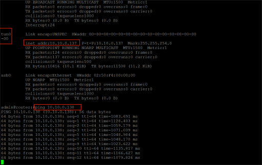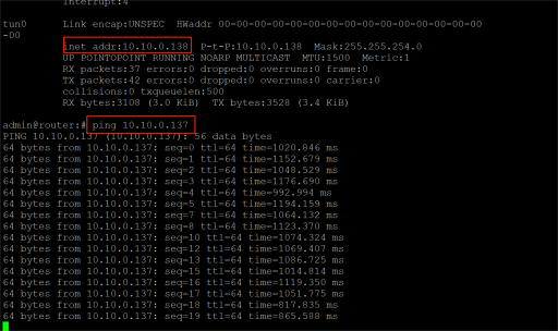 Access the device via CLI and check the network interface.Input the command “ifconfig” and ping the tunnel IP.