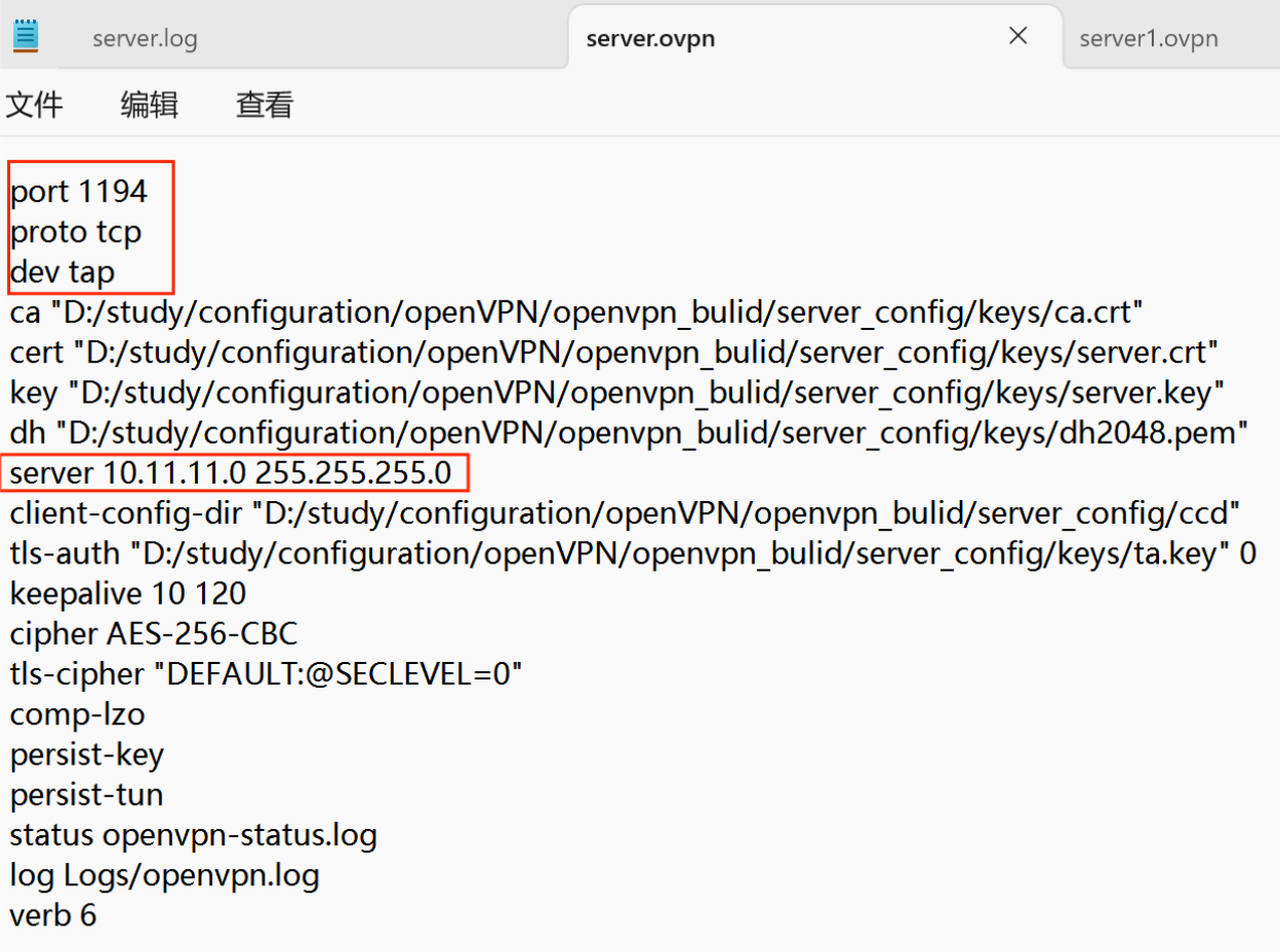 The second way, we can use the OpenVPN GUI to build the server on our PC, and configure a client to test. The server configuration is as follows.