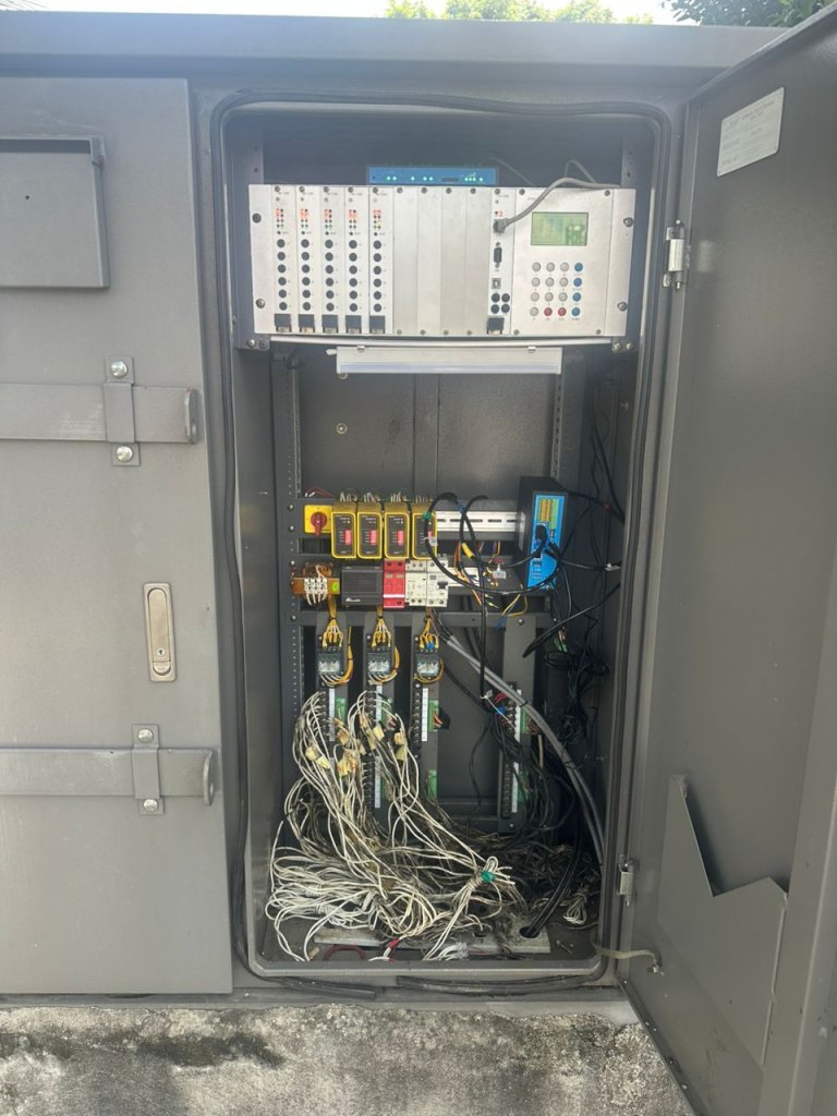 The TG465 mounts alongside the road, connected to a radar sensor via RS485 and to an LED display sign via relay output or RS485. The entire system draws power from a solar panel and battery bank, with the gateway’s wide 5–60 VDC input accepting variable solar voltage. When a vehicle approaches, the radar measures speed and sends it to the TG465. The gateway compares the reading against the posted limit and triggers the LED display to show the actual speed. If speeding occurs, it activates a flashing warning in the local language. All speed events are logged locally to NVMe SSD storage.